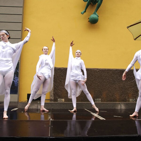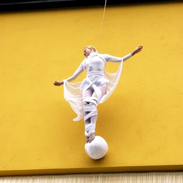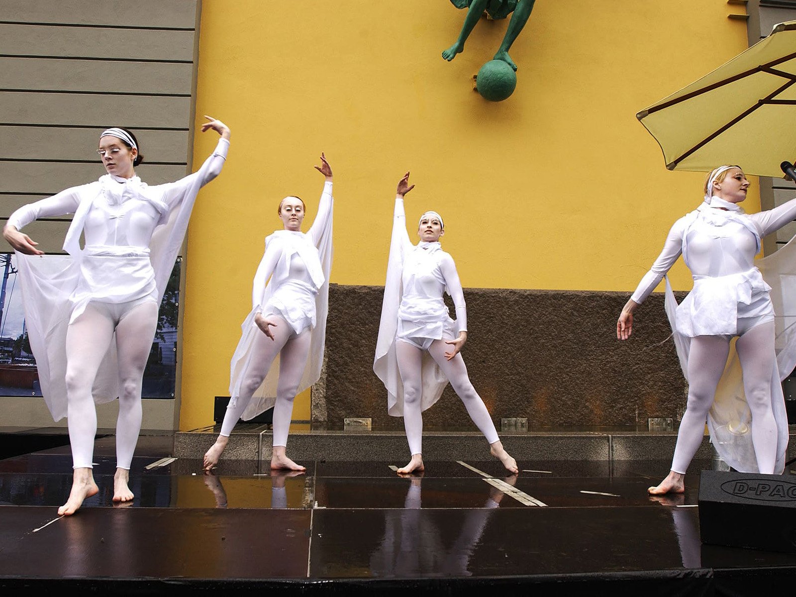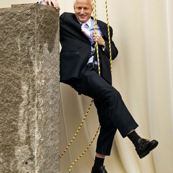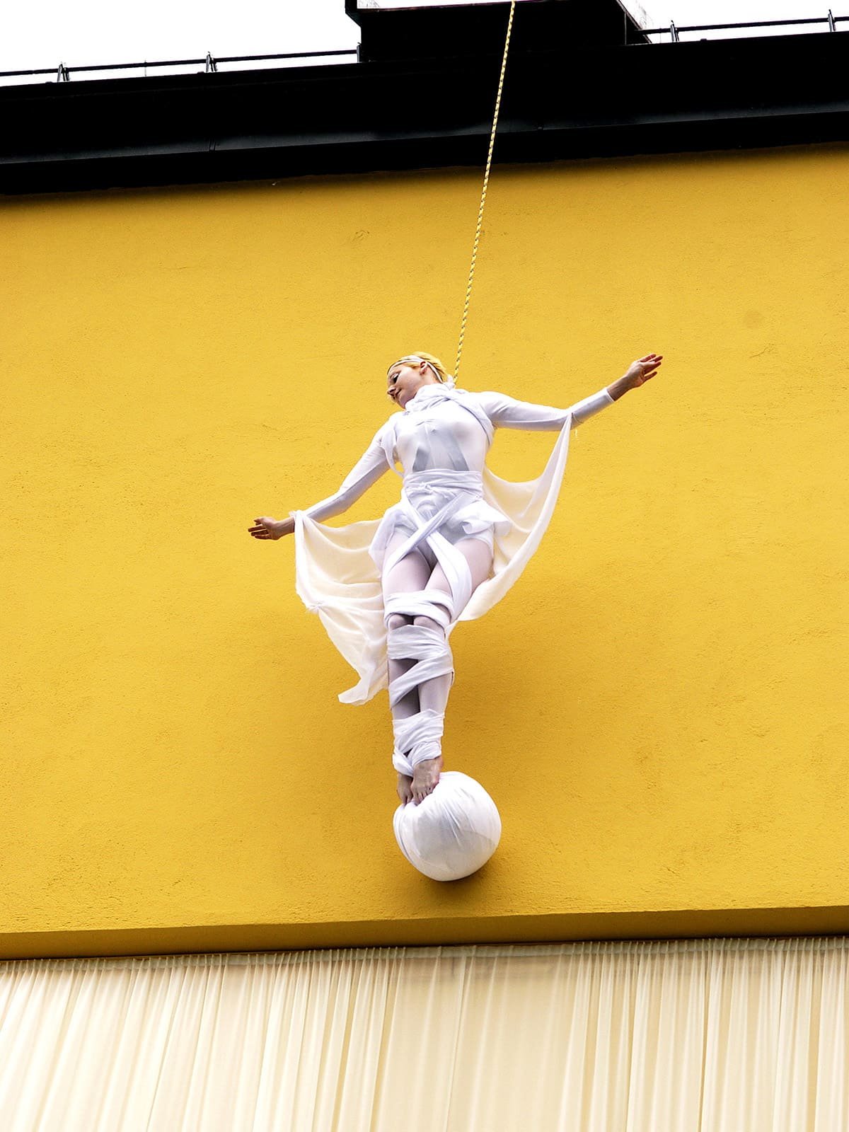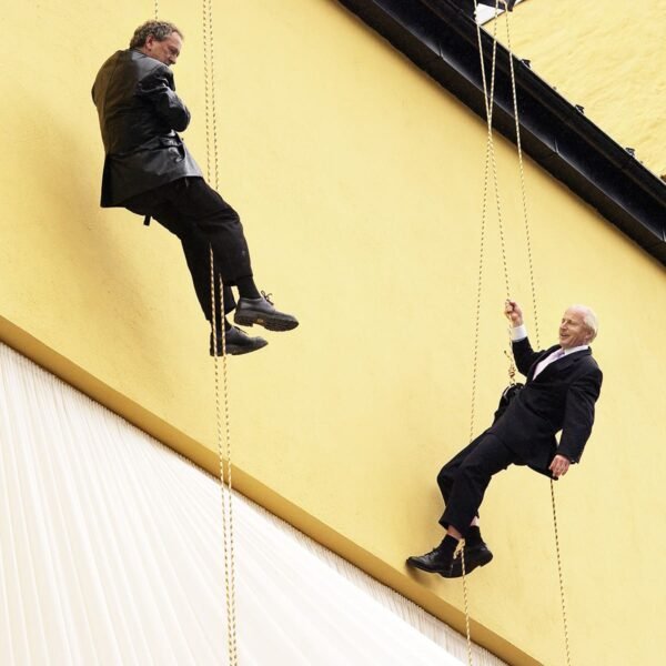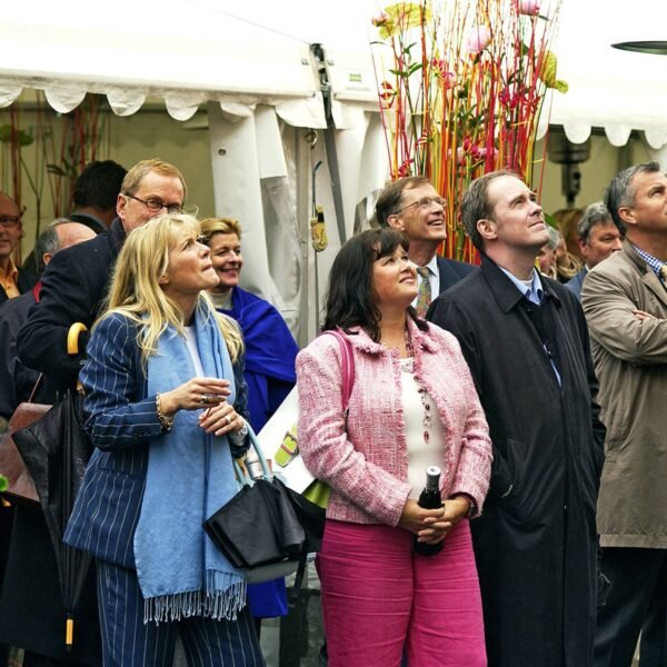 Det var ingen tradisjonell snorklipping inviterte gjester fikk overvære denne regntunge og kjølige junidagen. Seansen startet, spektakulært nok, med profesjonelle utøvere dansende nedover husveggen der Fru Fortuna er montert. Men da gjestene fikk se to svartkledde herrer rappellere nedover bygget gikk det et sus gjennom forsamlingen. For hvem kom der – jo Christian Ringnes og Per Ung!
