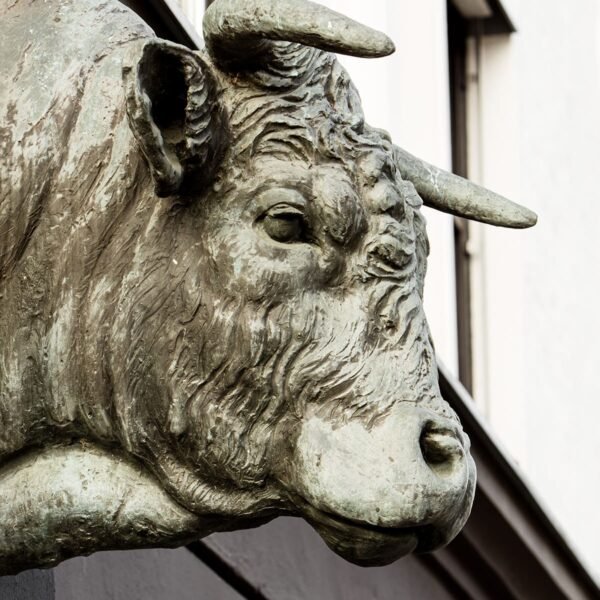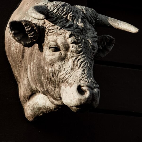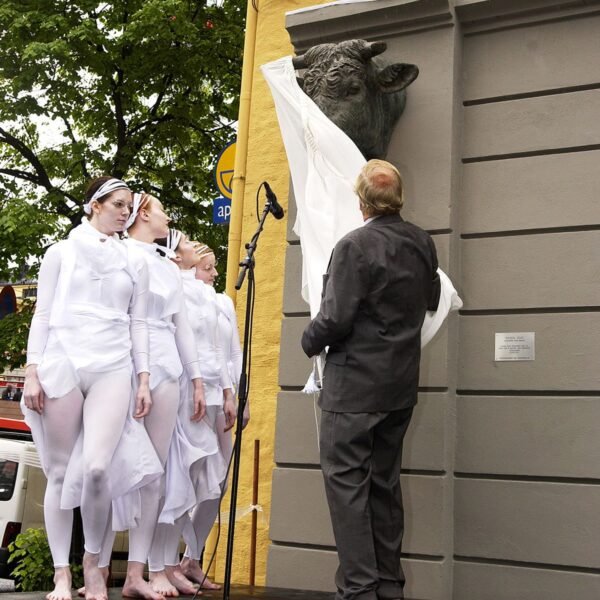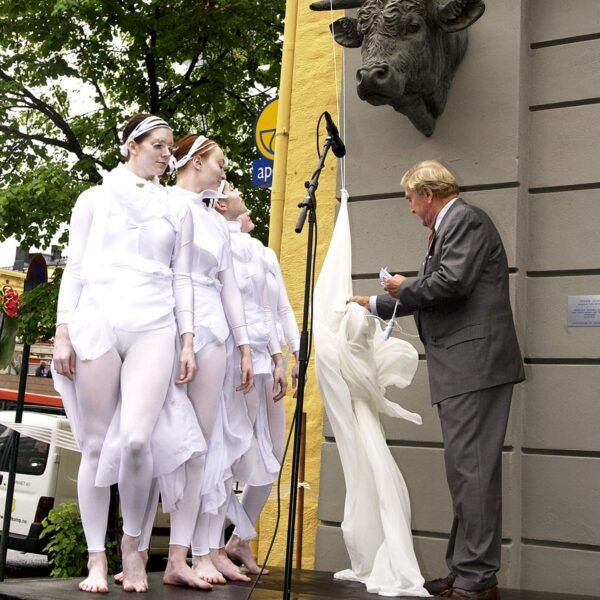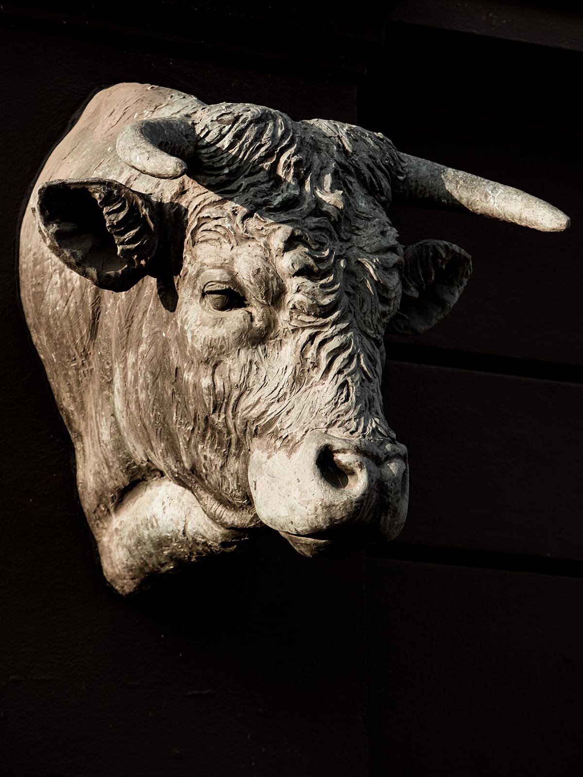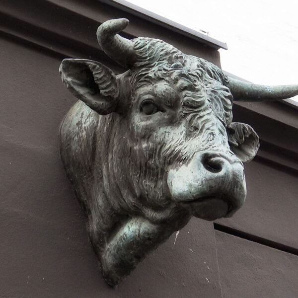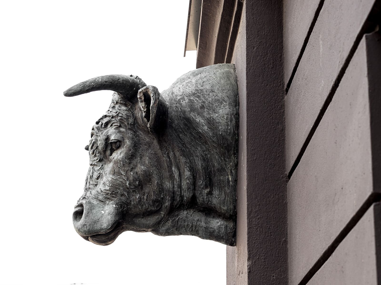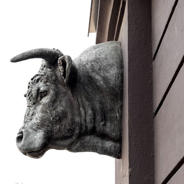 Oksehodet er laget av Elena Engelsen og ble avduket 3. juni 2005, samme dag som Fru Fortuna. Det var ordføreren, Per Ditlev-Simonsen som dro av «sløret», og forsamlingen lot seg begeistre. Og selv om det gode sommerværet i juni glimret med sitt fravær, var det en upåklagelig stemning på Europarådets plass denne fredag ettermiddag.