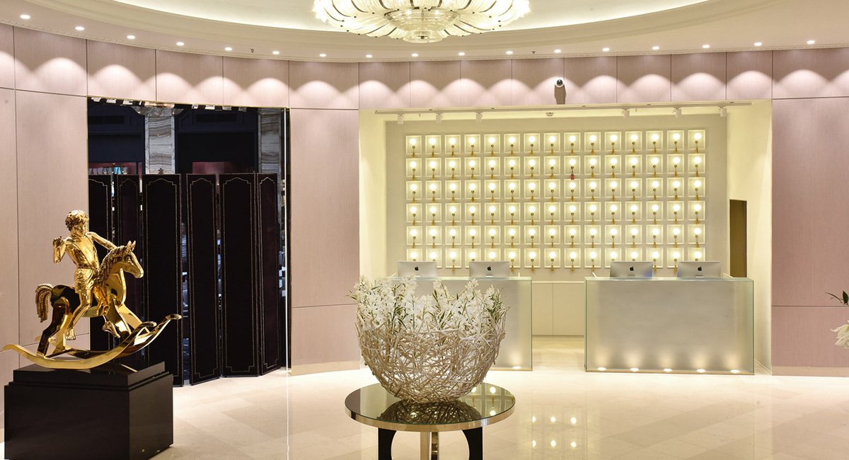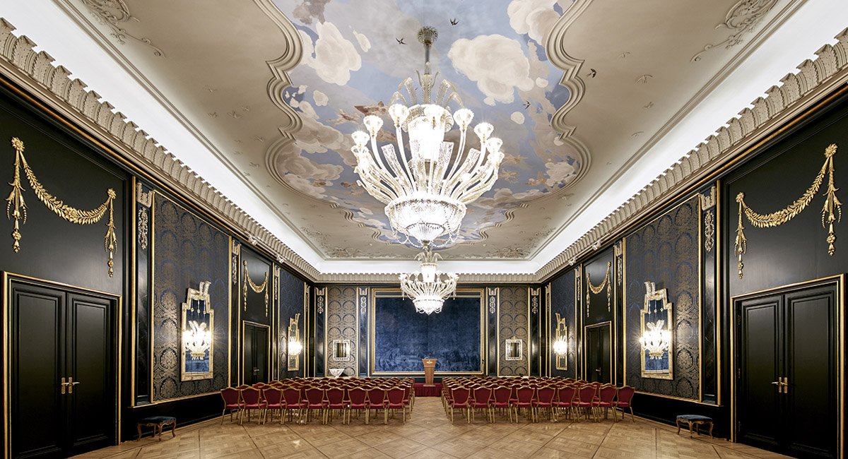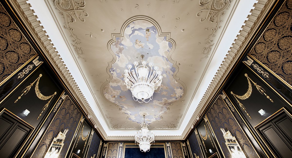 Av alt det vakre i Rococo er kanskje kronen på verket de to venetianske lysekronene. De skinner klarere enn på lenge. Lysekronene, som ble kjøpt på 1960-tallet, er spesiallaget av Murano-glass i Italia, og veier 650 kilo hver.
