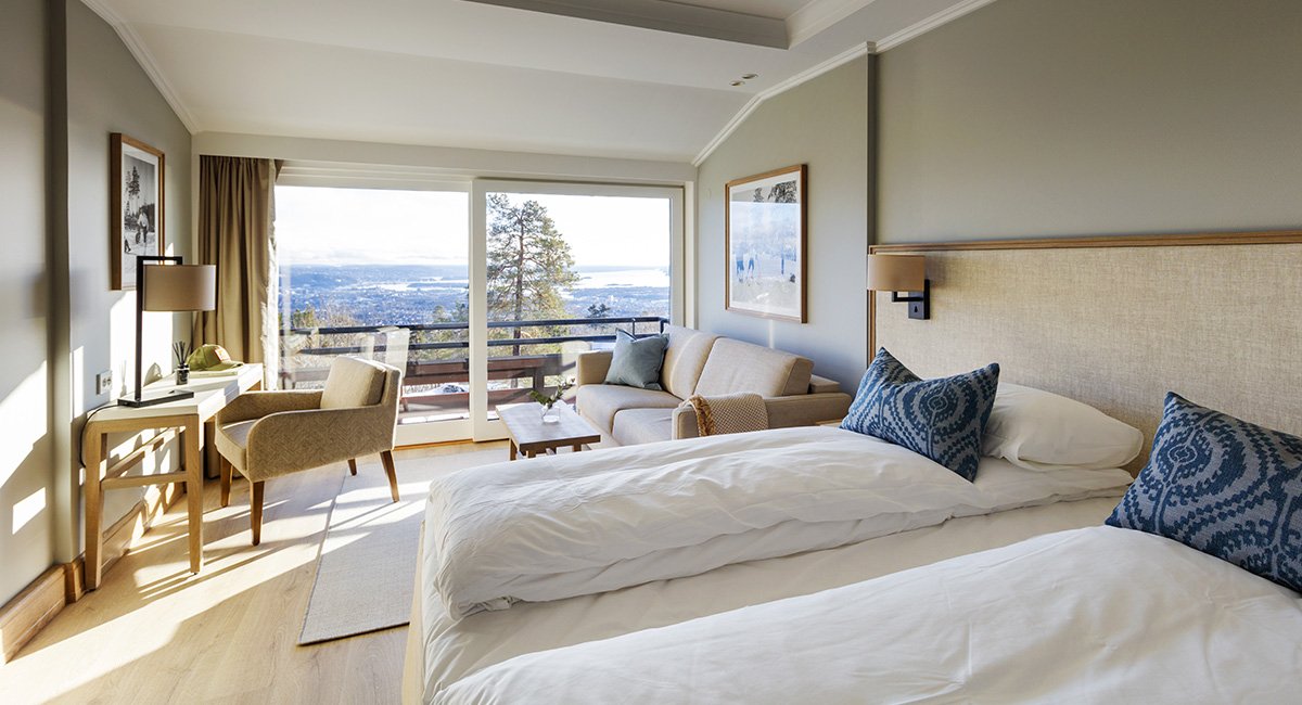 Kongeveien 26 i Holmenkollåsen ligger 350 meter over havet og har en fantastisk utsikt over Oslo. Nordmarka ligger rett utenfor hotelldøren og det er umiddelbar nærhet til skianlegget i Holmenkollen. Holmenkollen T-banestasjon ligger 400 meter unna og tar deg ned til Jernbanetorget og Oslo S på under en halvtime.