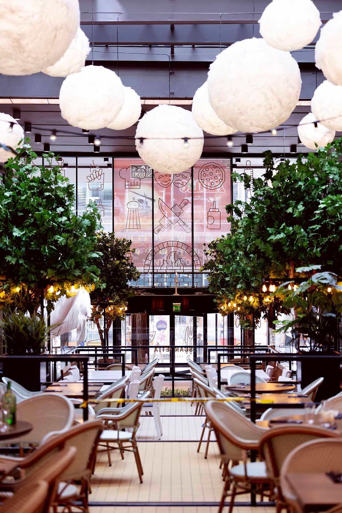 Passasjen er prydet med en grønn allé, som skaper hyggelige fortaussituasjoner utenfor serveringsstedene på hver side av passasjen. Selv på gråværsdager er Folketeaterpassasjen en lun, grønn oase, som gir folk en følelse av å være utendørs selv når de er innendørs – uavhengig av årstid. Dette gir et helt unikt innemiljø, som det ikke finnes maken til i Oslo.