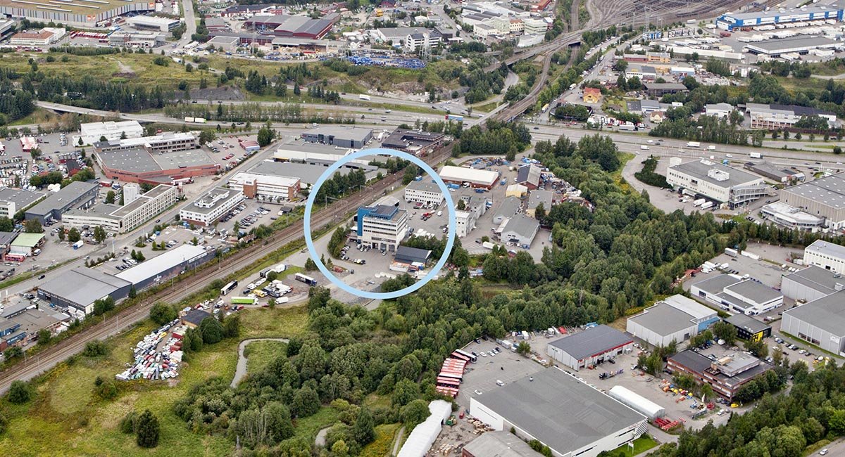 Innkjøring fra Breivollveien. Lett adkomst til E6 og Ringveien i Oslo.