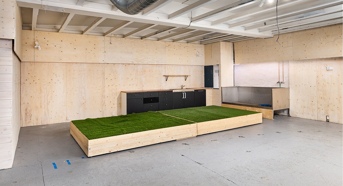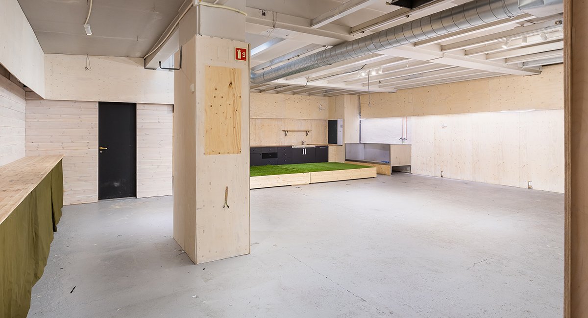 Lageret på 155 kvm BTA har et lite tekjøkken og sykkelvask, som kan fjernes hvis ønskelig.