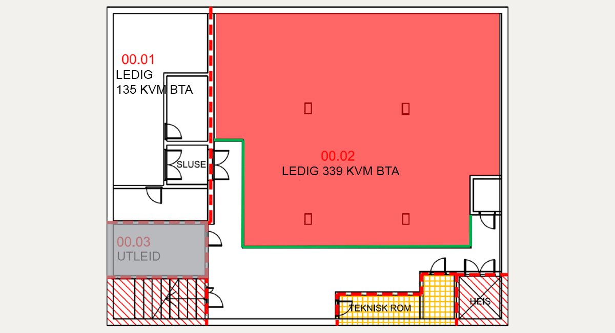- 1.500 kvm BTA lager i 1. etasje. Ledig fra 01.02.2026