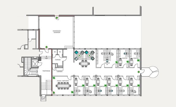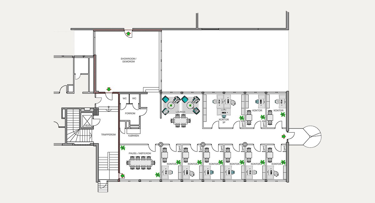 Vi tilbyr funksjonelle og lyse kontorlokaler/showrom i ulike størrelser.