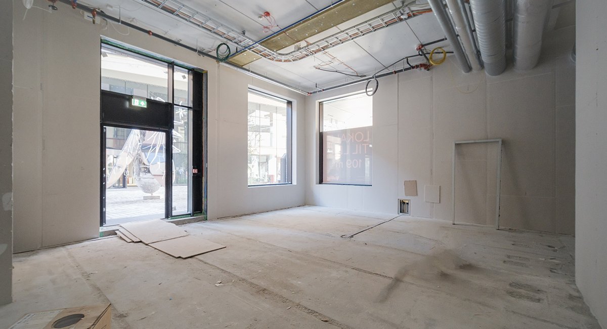 Lokalene på gateplan har god takhøyde med store vindusflater og overleveres med white box-standard, klart for ny leietakers tilpasninger.