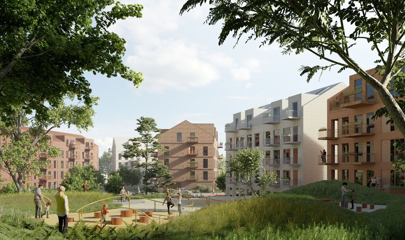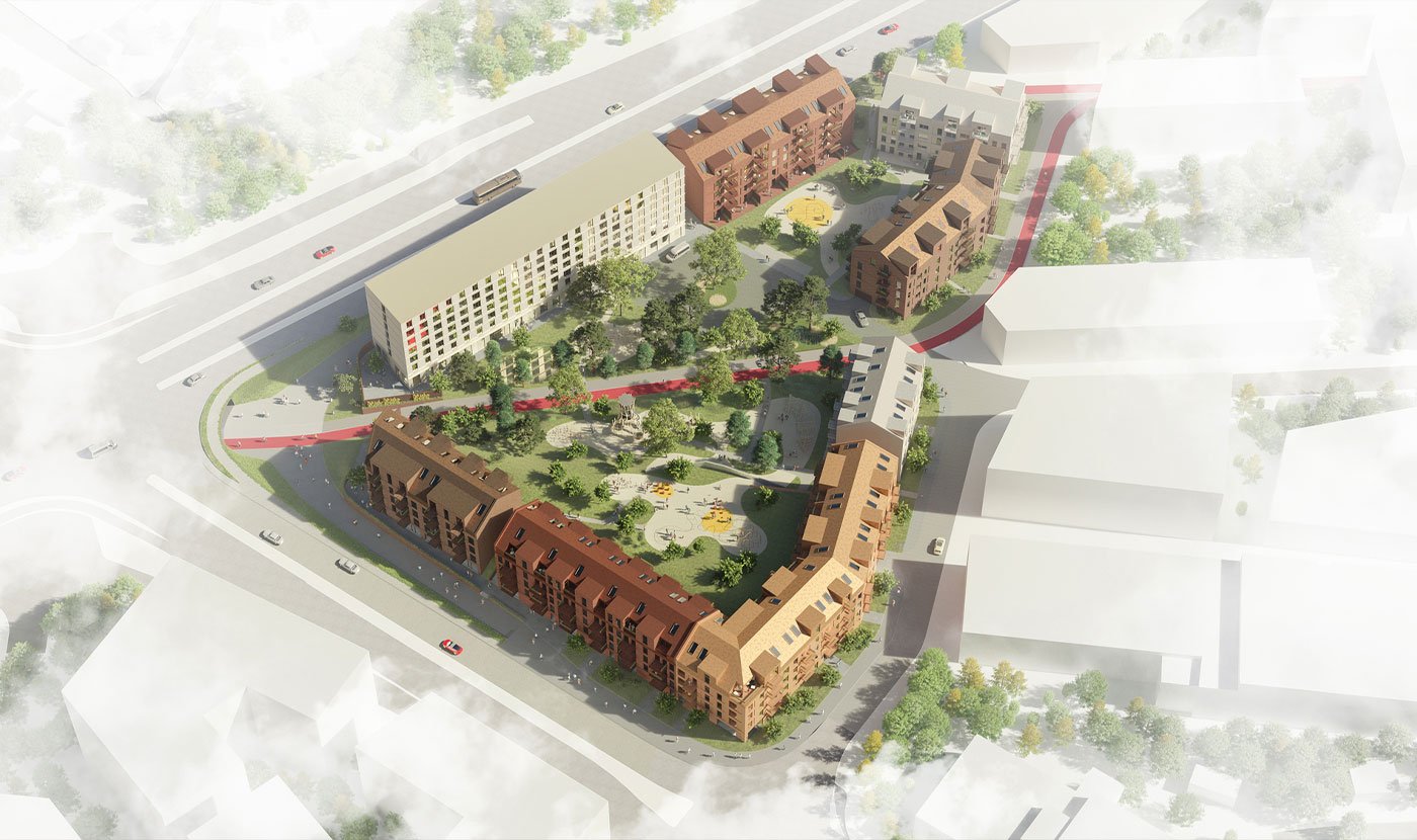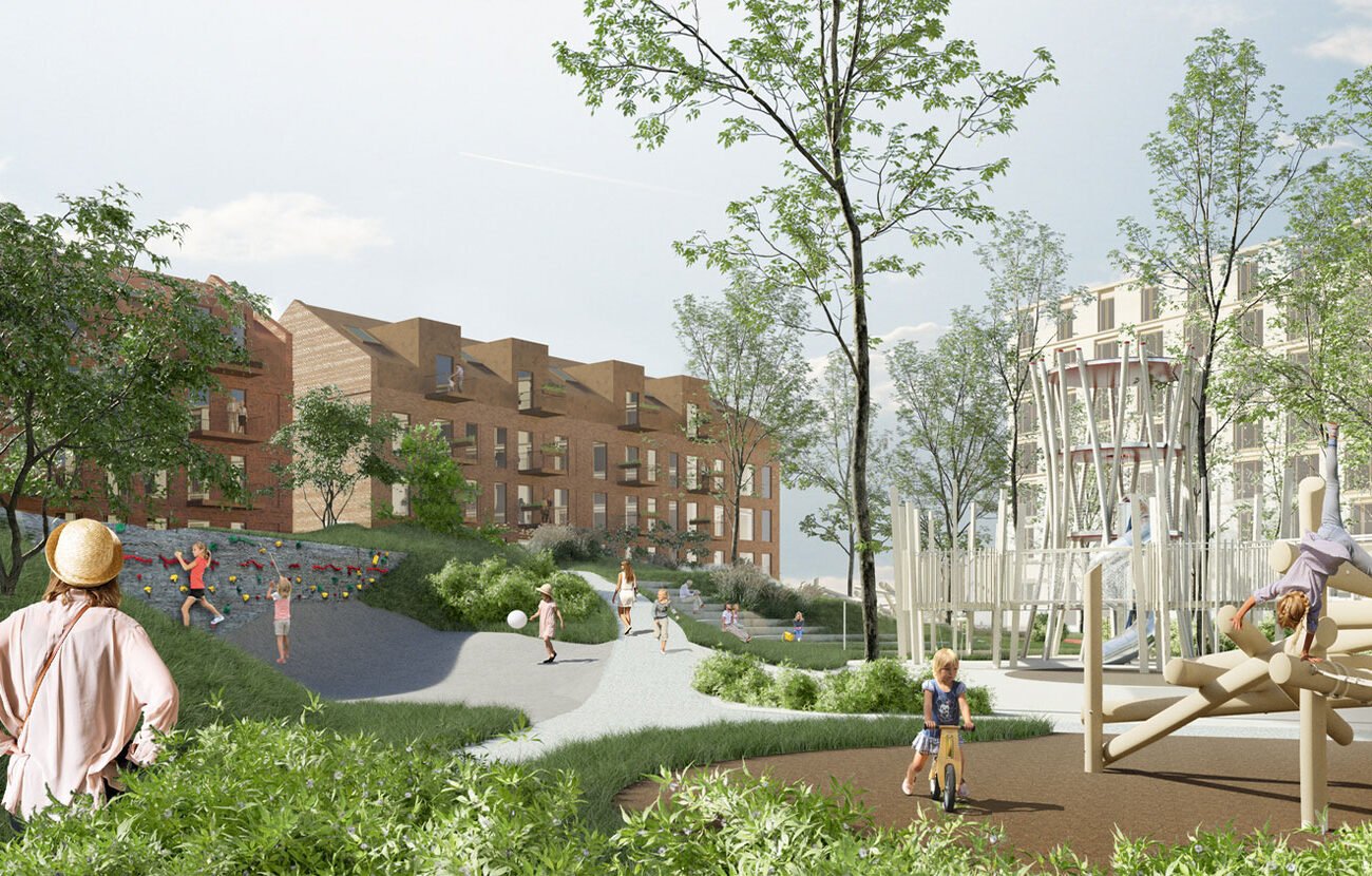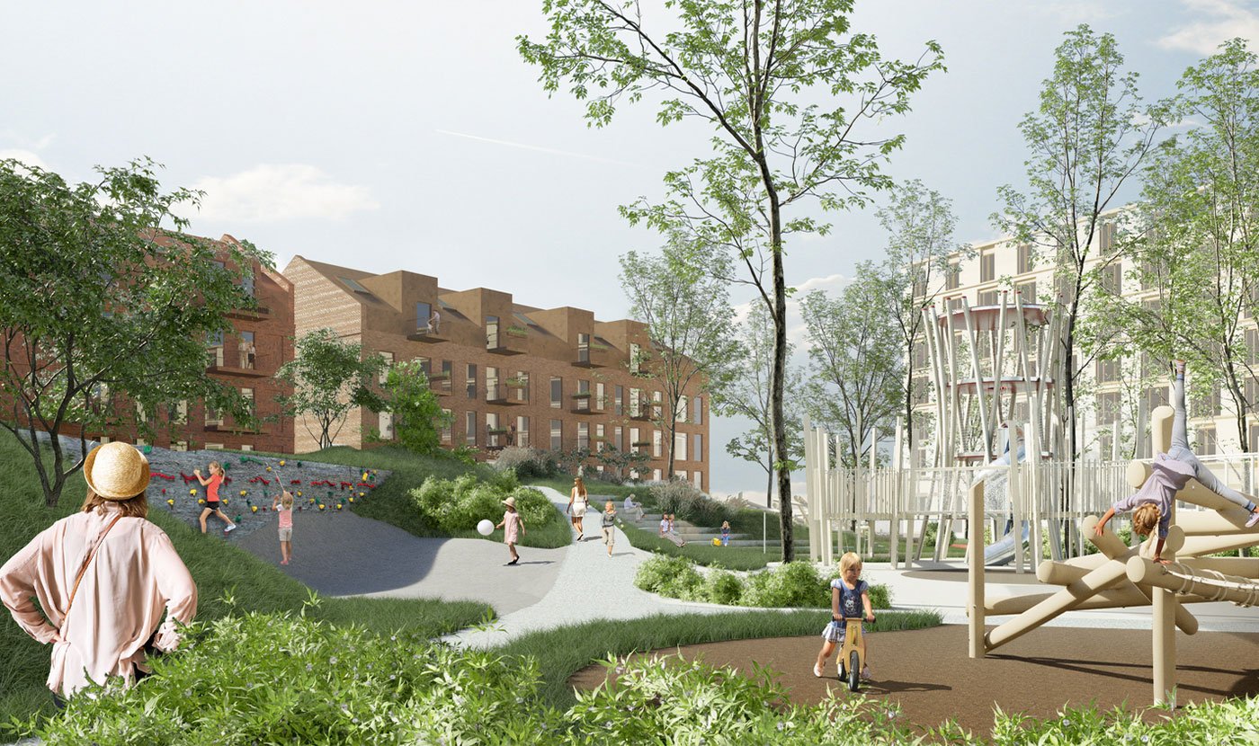 Leilighetene vil ligge rundt et stort åpent indre rom. Område vil inneholde et stort felles rom som skjermer for støy, og samtidig gir flotte solforhold. Det vil være rom for lek og moro i grønne og skjønne naturomgivelser. Utearealene blir bundet sammen med et stinett og sykkelvei, som gir trygge omgivelser for både barnefamilier og eldre.